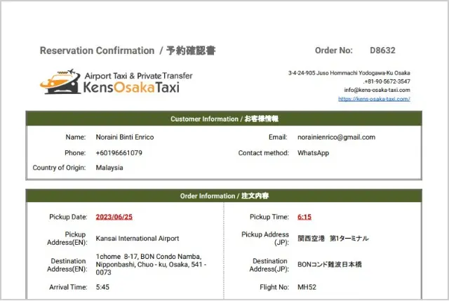 In addition to Kansai International Airport, we may also offer airport transfer services from Itami Airport. For more details, please check service pages.